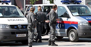 Polizisten einzuschlagen.