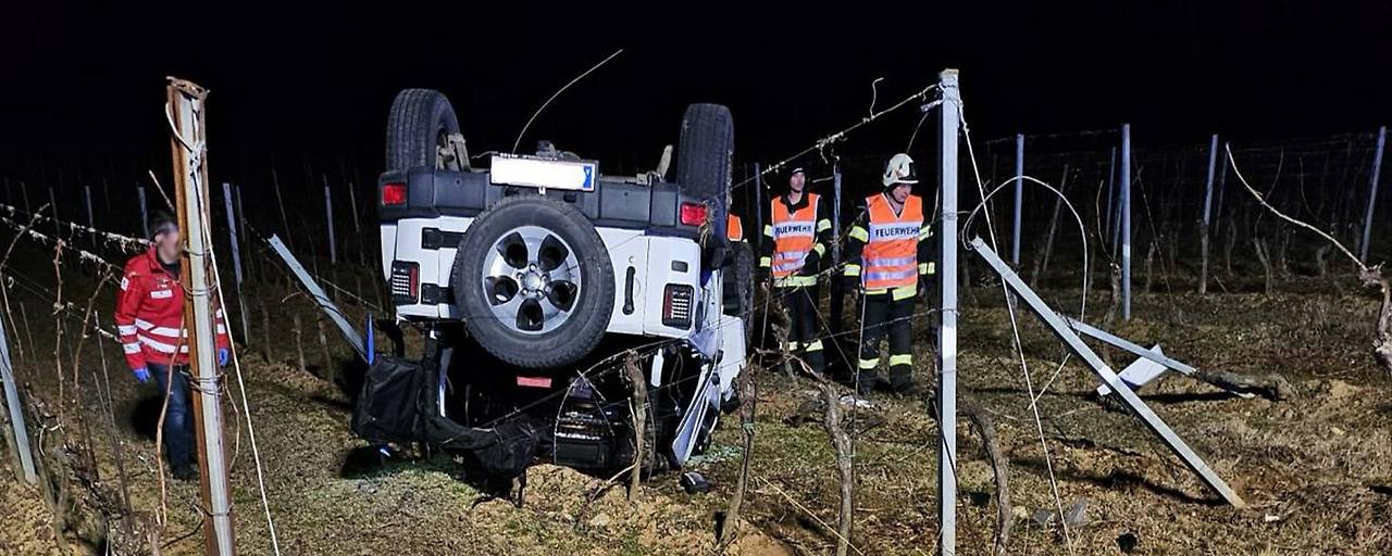 Ein Teenager (17) hatte betrunken das Auto gegen 20 Uhr von Oslip Richtung Rust gesteuert. In einer Kurve veriss der jugendliche Fahrer den Wagen. Das Fahrzeug überschlug sich und landete am Dach in einem Weingarten.