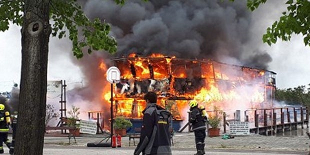 Auch der Bootssteg war teilweise schwer in Mitleidenschaft gezogen. Feuerwehrleute waren damit beschäftigt, die verkohlten Reste zu löschen. Das Knattern der Motoren der Wasserpumpen und Notstromaggregate erfüllte weiterhin die Luft.