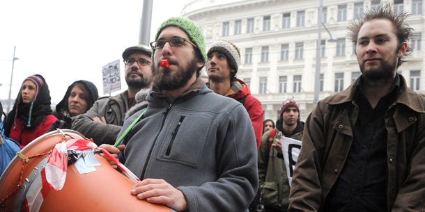 Begleitet von der "Rebel Clown Army" zogen die Studenten vom Hauptgebäude der Uni Wien am Ring unter grauem Himmel weiter in Richtung Museumsquartier, wo die Schlusskundgebung stattfinden soll. Dort wurde für Töchterle auch ein "Denk-Mal" errichtet, auf dem die Studenten negative Folgen des UG 2002 anprangerten - vom Abbau studentischer Mitbestimmung bis zu der als K.O.-Phase kritisierten Studieneingangs- und Orientierungsphase (STEOP) - und Töchterle Denkanstöße für eine Neugestaltung lieferten.