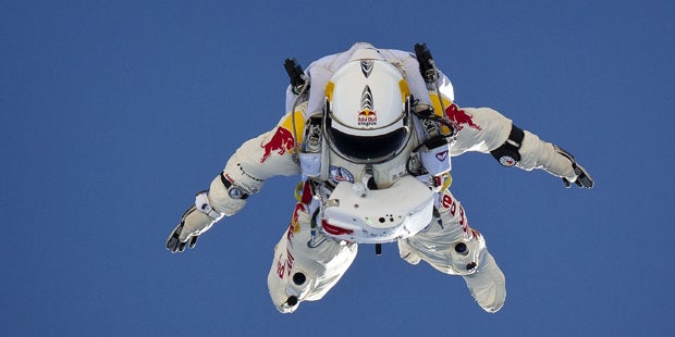 Am 14. Oktober 2012 sprang der Salzburger Extremsportler Felix Baumgartner aus einer Höhe von rund 39 Kilometern auf die Erde und durchbrach dabei die Schallmauer. Deutsche Forscher haben nun die Strömungsdynamik des Falls analysiert und berichten im Fachblatt "Plos One", dass Baumgartner trotz seines unregelmäßig geformten Outfits schneller fiel als ein glatter, symmetrischer Körper.