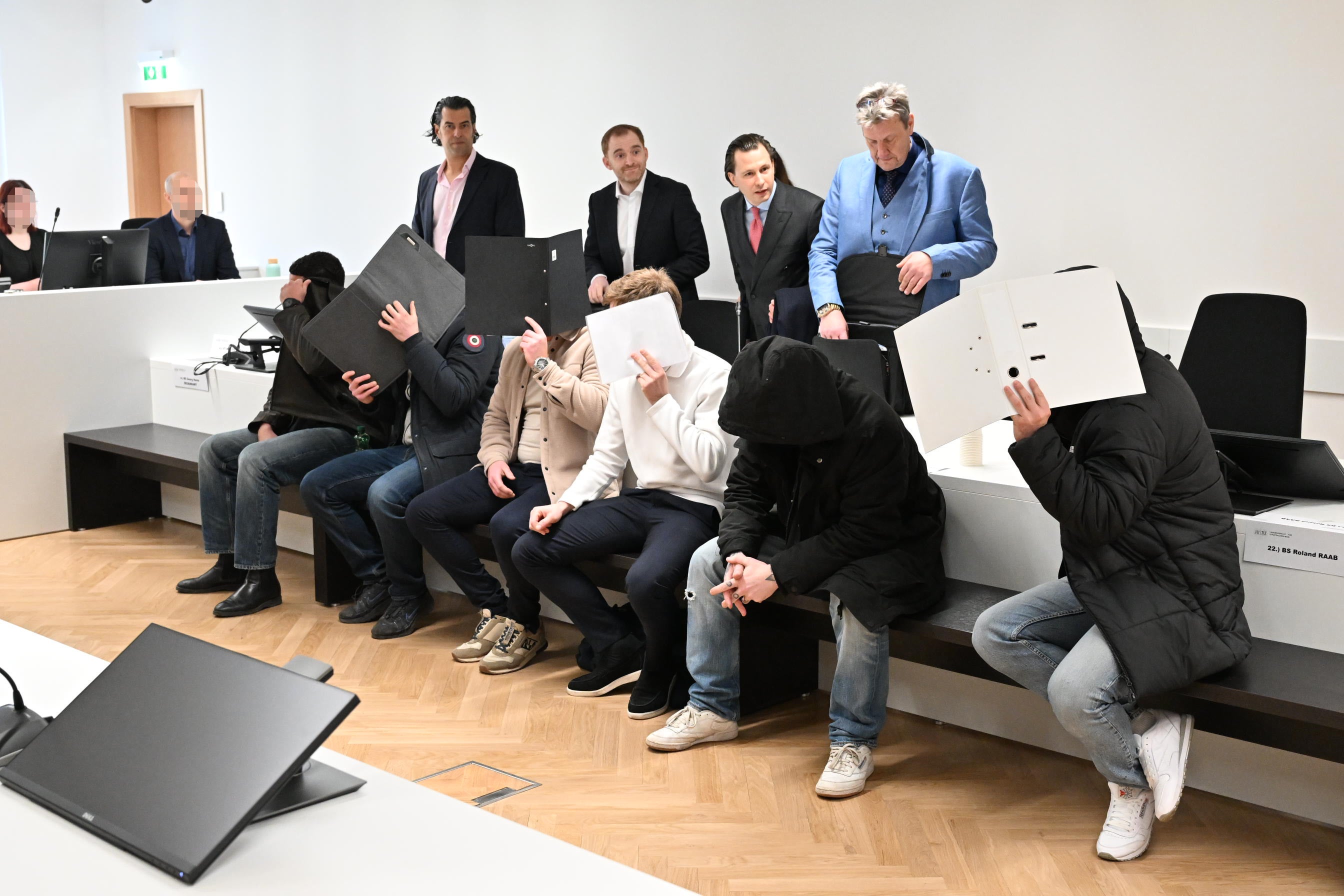 Im weiteren Verlauf des Vormittags wurden Videoaufnahmen der Stadionkameras gesichtet. Zu sehen waren die gewaltsamen Ausschreitungen zwischen den Rapidlern und Austrianern auf dem Spielfeld des Allianz Stadions, von denen sich nun einige die Anklagebank teilen. Fans der beiden Lager zündeten pyrotechnische Gegenstände und gingen aufeinander bzw. auf Polizisten los. Es gab mehrere teilweise schwer Verletzte. Die Sichtung der Aufnahmen sollte klären, inwieweit die Angeklagten daran beteiligt waren. "Er ist hier sehr gut in der Menge zu erkennen", gab die Richterin über den Viertangeklagten zu Protokoll. "Aber nicht ganz vorne", schob Verteidigerin Pia Kern ein. Sie beantragte den damaligen Rapid-Trainer Robert Klauß sowie dessen Co-Trainer Stefan Kulovits als Entlastungszeugen zu laden.