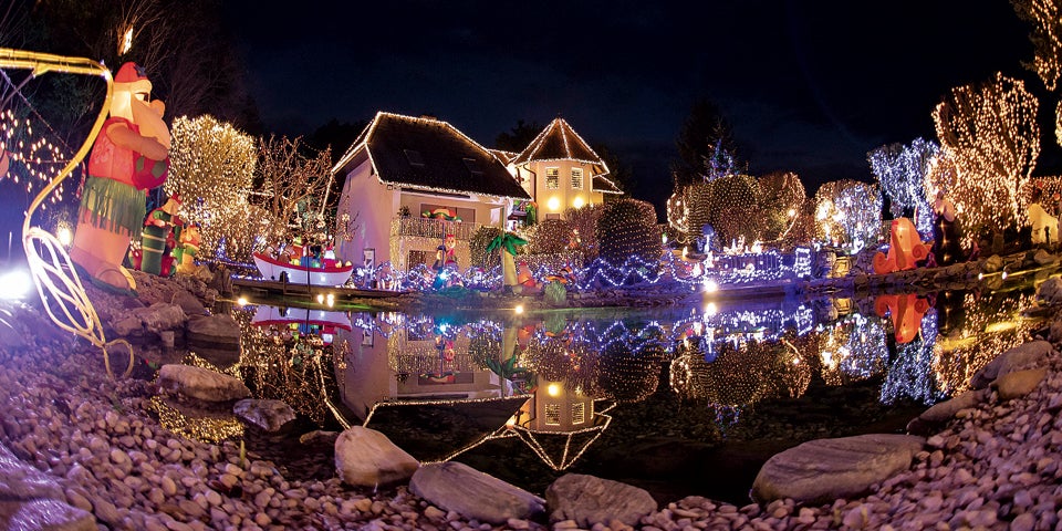 Vor einigen Jahren noch sorgte das Haus für ein veritables Verkehrschaos. Mittlerweile ist es offiziell: Es ist Europas größte Ansammlung von aufblasbaren Weihnachtsfiguren – sie sind bis zu neun Meter hoch.