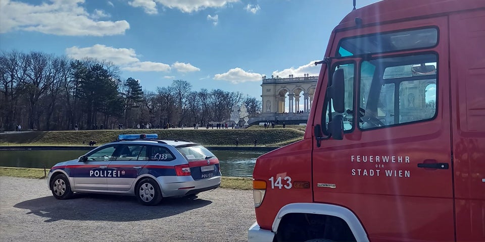 Wien: Ein Mann ist Samstagmittag in einen Brunnen bei der Gloriette im Park von Schloss Schönbrunn gestiegen und von der Wiener Feuerwehr gerettet worden - und das eigentlich gegen seinen Willen. Bei Temperaturen knapp über null Grad stand er bis zur Brust im eiskalten Wasser, schon sichtlich unterkühlt, wollte aber nicht herauskommen, berichtete Feuerwehrsprecher Lukas Schauer. Zwei Feuerwehrleute bargen den Mann unter Leinensicherung und mit Rettungswesten ausgestattet.