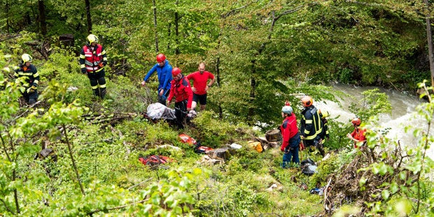 Die Bergung des Kajakfahrers war schwierig: Der Unfallort war nur über eine steile Böschung erreichbar. Die Feuerwehr forderte die Bergrettung an. Diese seilte die Helfer zum Fluss hinunter ab.