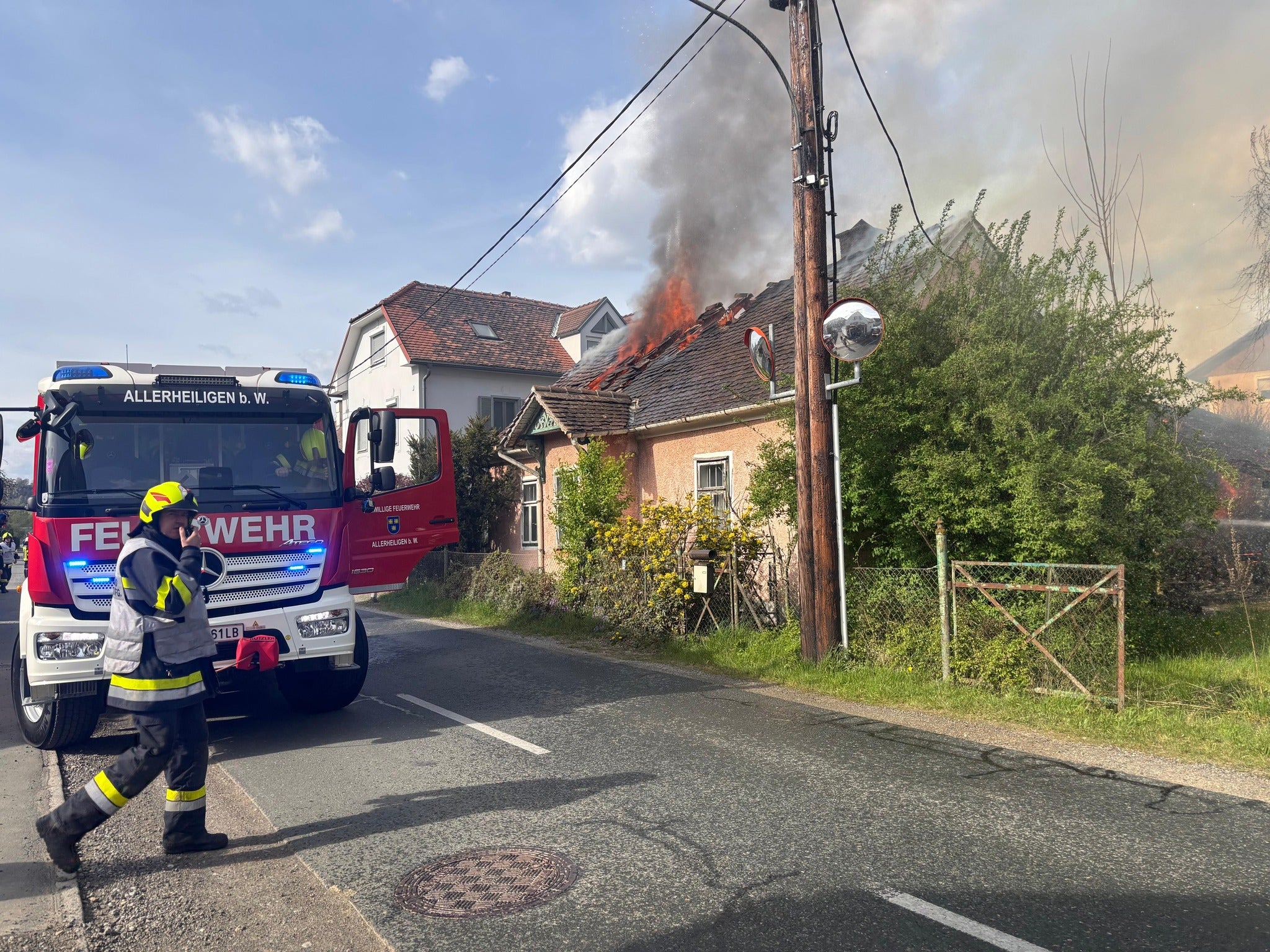 Stmk. In Wildon im Bezirk Leibnitz stand Donnerstagnachmittag ein Einfamilienhaus in Vollbrand. Die Flammen hatten von einer Gartenhütte durch den starken Wind auf das unmittelbar benachbarte Objekt übergegriffen, berichtete die Landespolizeidirektion Steiermark.