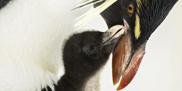 Bei den Felsenpinguinen im Tiergarten Schönbrunn hat es Mitte April Nachwuchs gegeben. Nach rund 33 Tagen Brutzeit sind elf Küken geschlüpft. Die Pinguin-Eltern teilen sich im Polarium die Aufzucht. Abwechselnd wärmen sie die Kleinen und füttern sie mit vorverdauter Nahrung.