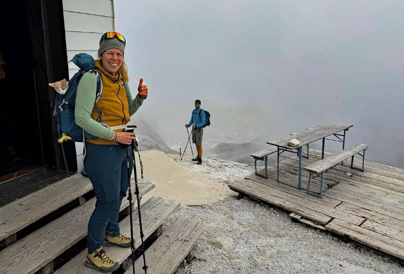 Bergab musste er dann nicht mehr laufen. Eine nette Wanderin hat ihn im Rucksack mit ins Tal genommen.