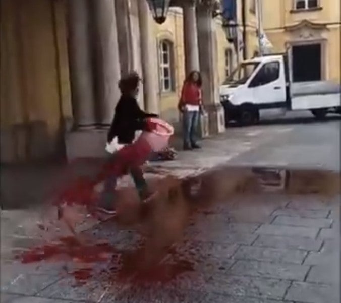 Erneut haben Anti-Israel-Demonstranten rote Farbe während einer Demonstration verschüttet. Dieses mal fand die Aktion vor Schloss Laxenburg statt.