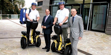 Im Landhausviertel in St. Pölten düsen zwei neue, futuristisch aussehende Elektrofahrzeuge herum, sogenannte Segways. Die Ersthelfer (First Responder) des Notrufs 144 flitzen damit von Einsatz zu Einsatz. Die Notruf-Chefs Thomas Pöchacker und Christof Chwojka: „Die Segways sind flott, sparsam, extrem wendig und man kommt mit ihnen überall schnell hin.“ Im Regierungsviertel (22 Hektar groß) mit allen Servicestellen, dem Kulturbezirk und dem ORF-Landesstudio halten sich täglich rund 3.500 Menschen auf. Pro Monat werden ca. 13 Einsätze auf zwei Rädern gefahren und das mit minimalem Energieaufwand.