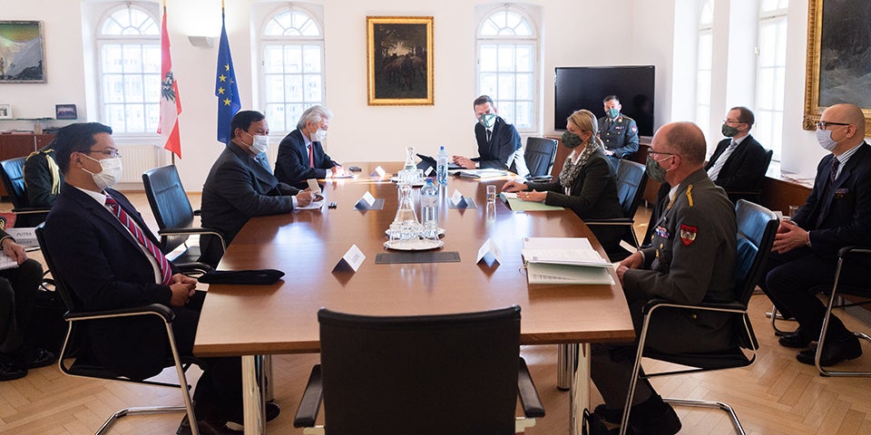 Wien. Am Dienstag besuchte Indonesiens Verteidigungsminister Prabowo Subianto Verteidigungsministerin Klaudia Tanner. Das Treffen fand im Zuge der Eurofighter-Verhandlungen in der Rossauer Kaserne in Wien statt. Nach einem offiziellen Empfang mit militärischen Ehren traten die beiden Minister mit ihren Beratern im Büro der Ministerin zu einem Gespräch zusammen.