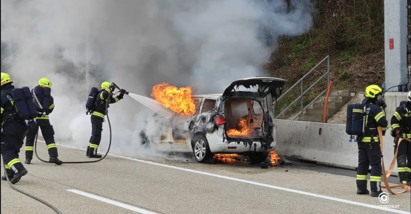 OÖ. Zu den brenzligen Szenen kam es am Sonntag auf der Pyhrnautobahn (A9) bei Micheldorf im Bezirk Kirchdorf. Kurz nach 10 Uhr ging ein Auto während der Fahrt in Flammen auf. Der Lenker konnte den Pkw noch rechtzeitig stoppen und sich ins Freie retten.