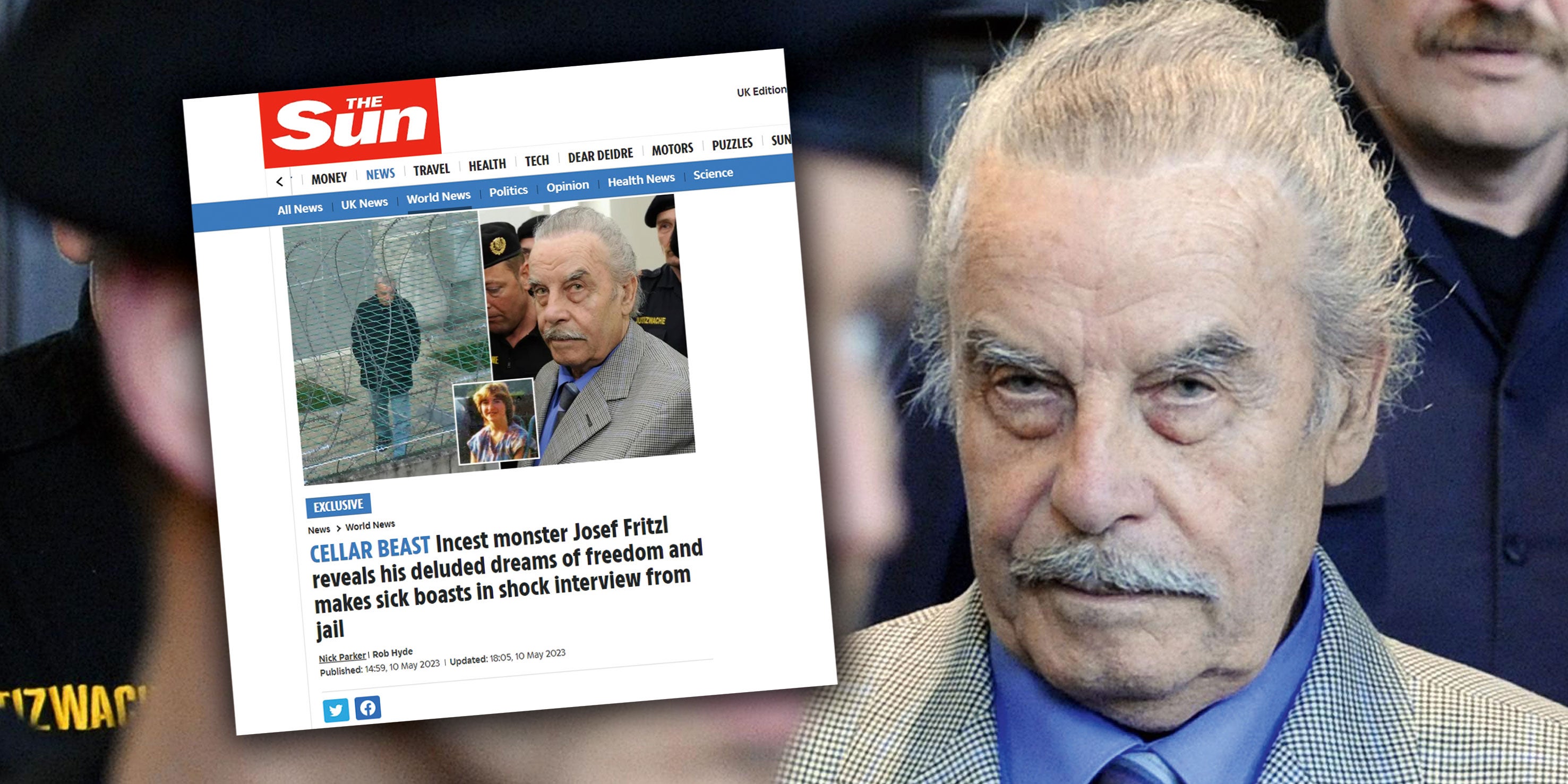 So möchte der Inzest-Vater, der seine Tochter 24 Jahre in seinem Keller eingeperrt und mit ihr sieben Kinder gezeugt hat, 130 Jahre alt werden. Täglich nehme er Vitamin-C-Tabletten und trinke viel Wasser. „Kürzlich habe ich gelesen, dass ein Mensch tatsächlich 150 Jahre alt werden kann, wenn er sich gut ernährt und bewegt“, sagt der 88-Jährige in dem skurrilen Interview. Er sei jedenfalls fitter als König Charles und könnte sogar noch die verkehrte Brücke machen.