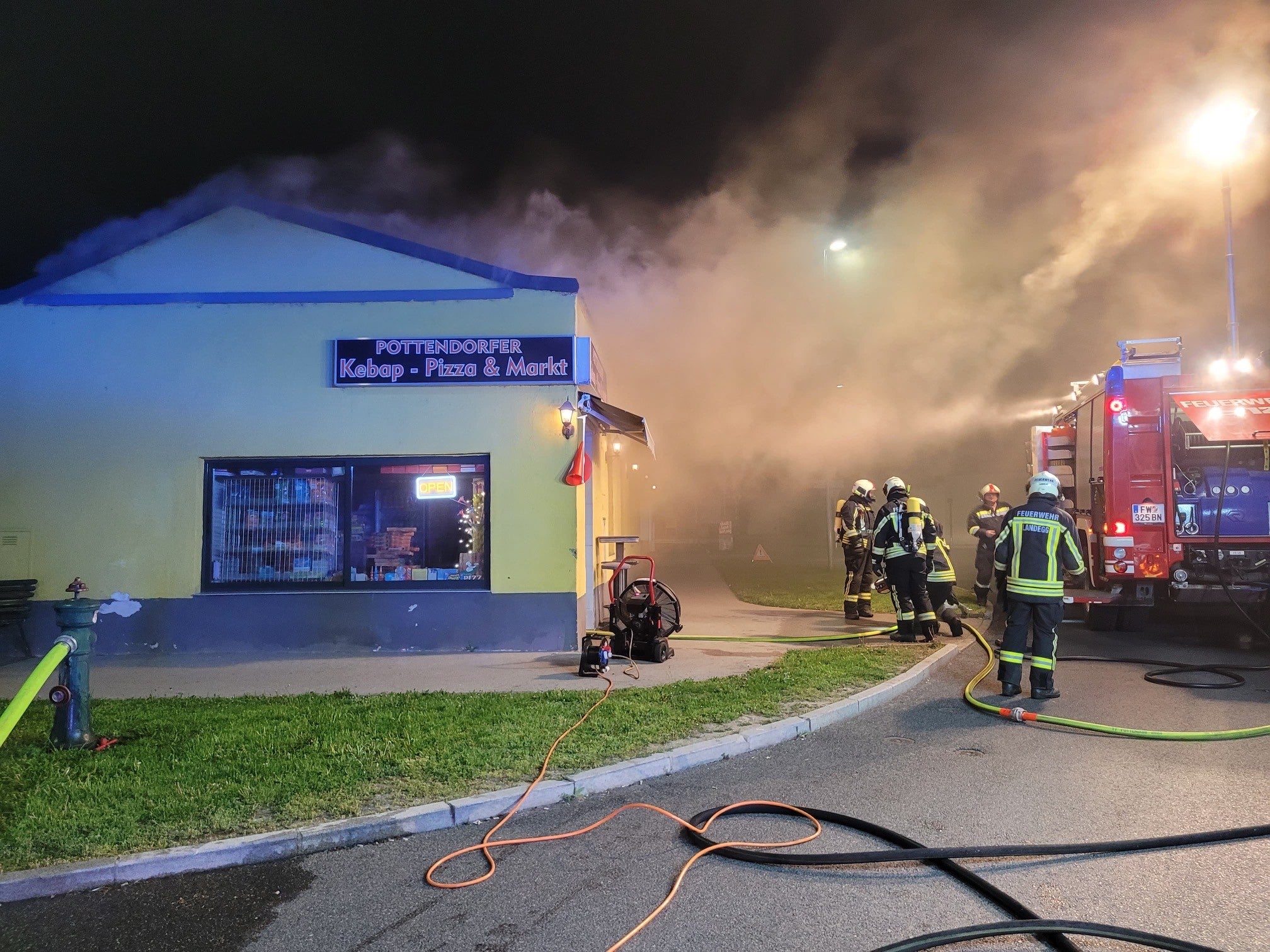 In der Nacht auf Donnerstag kam es in einem Gastronomiebetrieb in Pottendorf zu einem Brand. Gegen 2:25 Uhr wurden die Freiwilligen Feuerwehren Pottendorf und Landegg alarmiert – beim Eintreffen drang bereits dichter Qualm aus dem Gebäude.