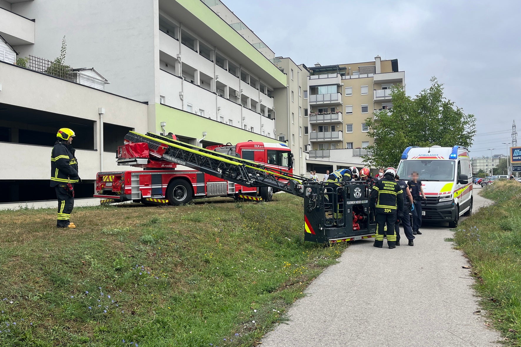 Wie sich herausstellte, waren die Gesuchten - zwei Slowaken (41 und 43) - auf das geflüchtet. Der Ältere der beiden konnte mithilfe der Flugpolizei lokalisiert und festgenommen werden. Der Mann stolperte und verletzte sich und wurde mit Unterstützung der Freiwilligen Feuerwehr Wiener Neudorf mit einer Drehleiter vom Dach geholt und anschließend von der Rettung versorgt.