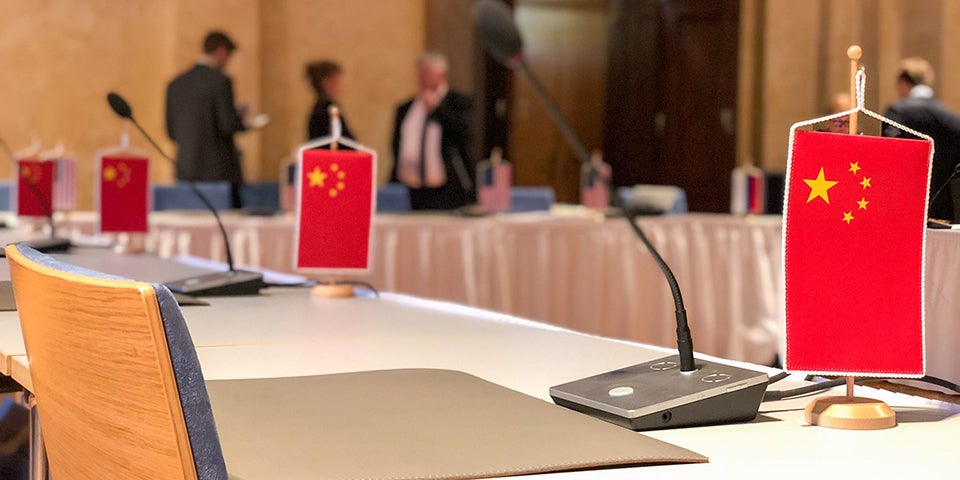 Wien/Ljubljana. Am Rande der in Wien stattfindenden Abrüstungsgespräche hat sich am Montag ein Flaggenstreit zwischen den USA und China entsponnen. Der US-Sondergesandte für Rüstungskontrolle, Marshall Billingslea, hatte auf Twitter nämlich ein Foto vom Verhandlungstisch im Palais Niederösterreich verbreitet. Auf dem Bild sind leere Plätze zu sehen mit vier kleinen chinesische Fahnen.