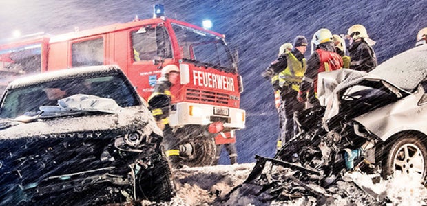 Zwei Verletzte bei Horror-Crash auf glatter Straße.