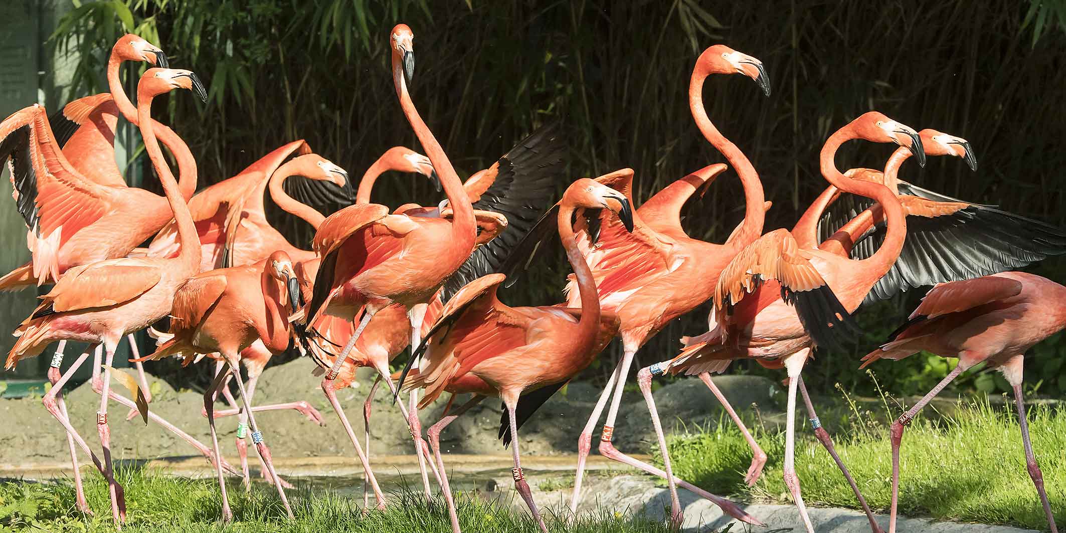 Im Zoo Schönbrunn gibt es damit nurmehr eine Flamingokolonie. Dabei handelt es sich um die Rosa Flamingos.