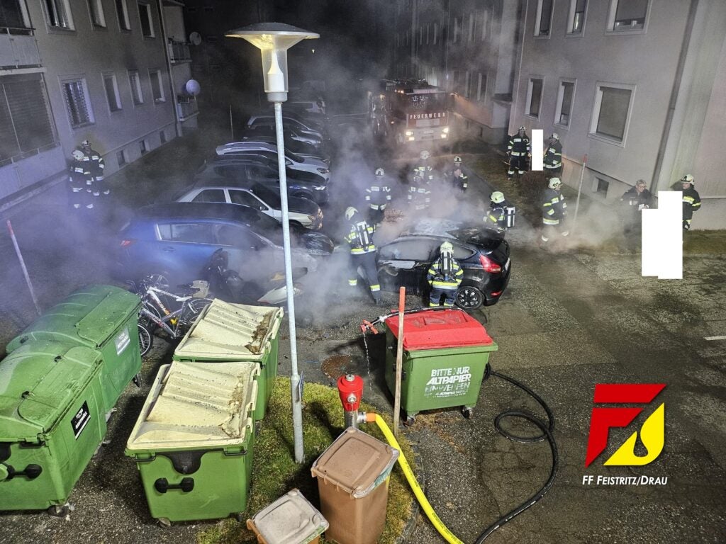 Wegen eines elektrischen Defekts machte sich ein Pkw auf einem Parkplatz in Kärnten selbstständig in Bewegung gesetzt - drei weitere Fahrzeuge fingen Feuer.