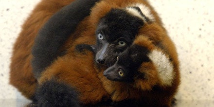 Für die von ihrer Mutter gleich nach der Geburt im April verstoßenen Affen-Zwillinge gibt es ein Happy End, meldete der Tiergarten Schönbrunn am Mittwoch. Von den Pflegern per Hand aufgezogen, sind Manja und Tanala mit inzwischen etwa 1.300 Gramm zwei stattliche Rote Varis - und leben wieder mit dem Muttertier zusammen.