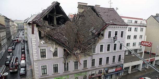 Samstagmorgen um 10.10 Uhr: Das vierstöckige Mehrfamilienhaus auf der Mariahilfer Straße 182 im 15. Bezirk fällt wie ein Kartenhaus in sich zusammen.