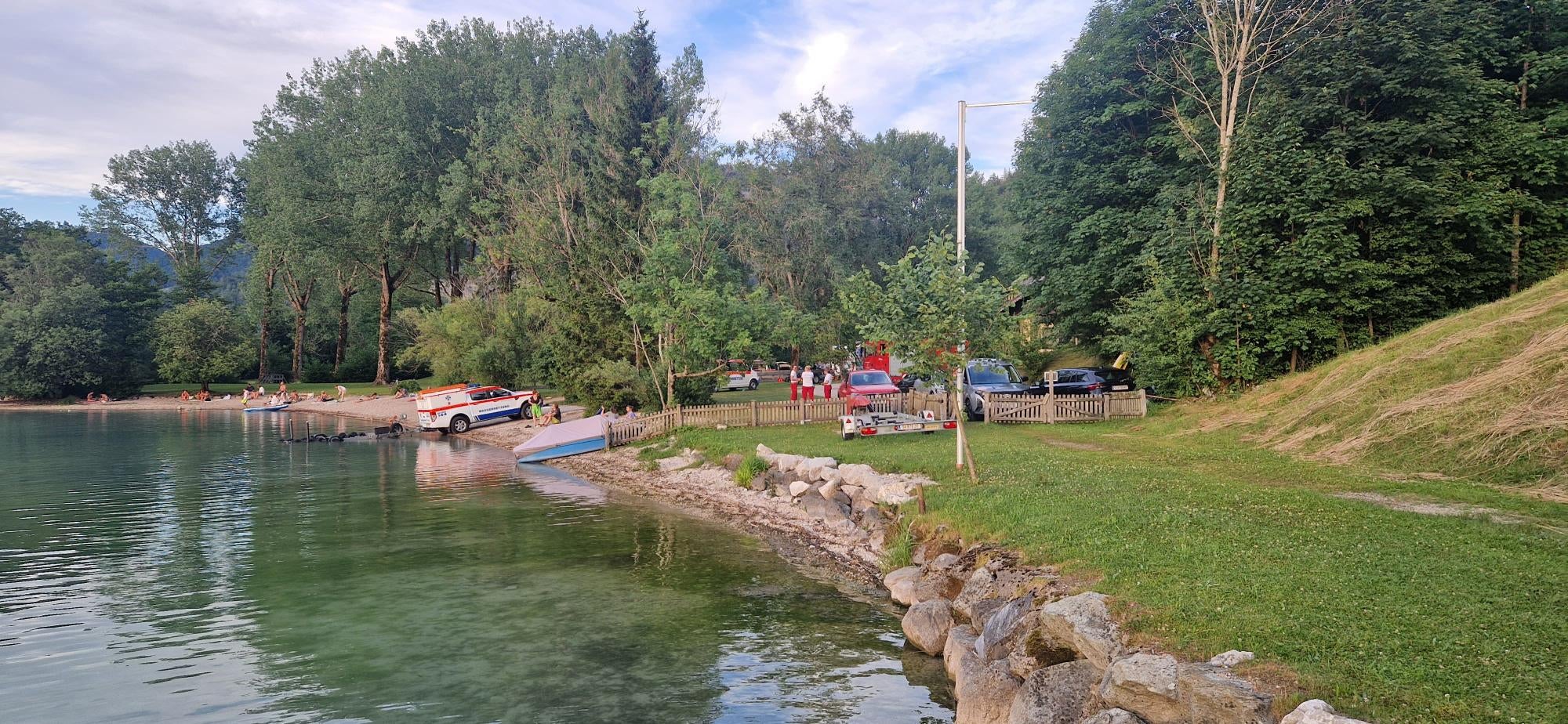 Großeinsatz am Montagabend am Fuschlsee im Flachgau: Dort trieb eine Sicherheitsboje für Schwimmer auf dem Wasser, die aber niemanden zugeordnet werden konnte.