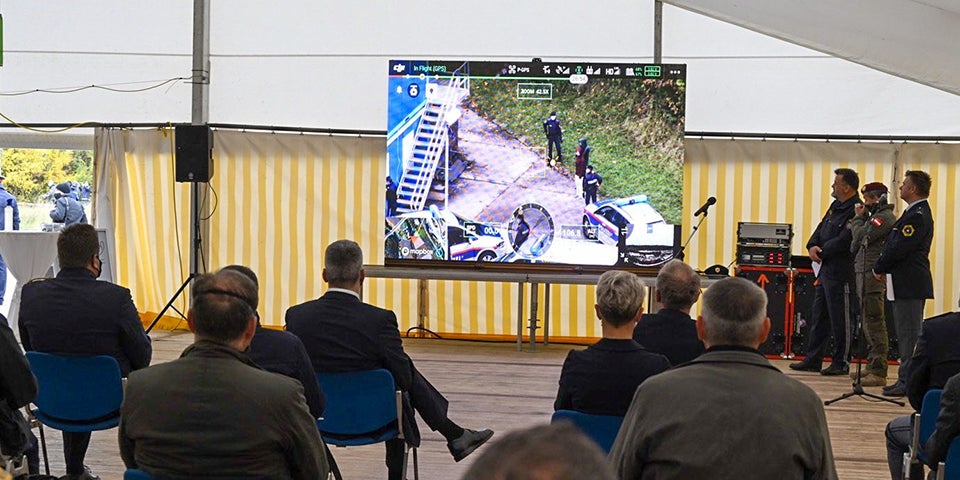 Österreichische und slowenische Polizei probt gemeinsamen Einsatz von Polizei-Drohnen in Spielfeld.