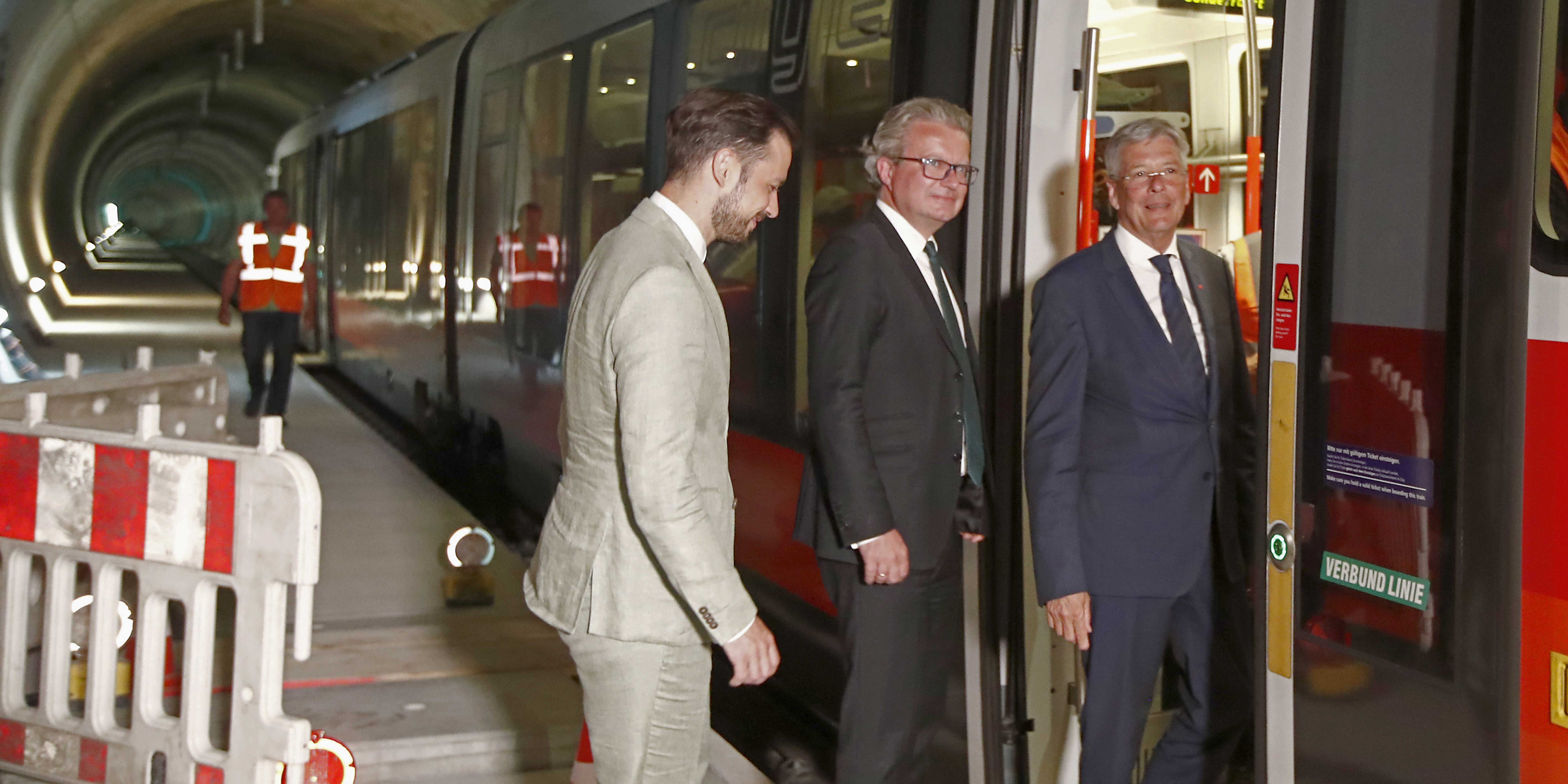 St. Paul/Lavanttal/Groß St. Florian. Nach jahrzehntelanger Planung, 25 Jahre nach den ersten Erkundungsbohrungen und 15 Jahre nach Baustart ist am Montag die erste medienöffentliche Fahrt durch den Koralmtunnel zwischen Kärnten und der Steiermark über die Bühne gegangen. Der steirische Landeshauptmann (LH) Christopher Drexler (ÖVP) sprach von einem "historischen Tag", der Kärntner Landeshauptmann (LH) Peter Kaiser (SPÖ) von einem Tag, der "ein Leben lang in Erinnerung bleiben" werde.