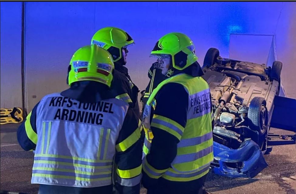 Der umgekippte Pkw, der von einem Somalier (28) gelenkte wurde, war aus noch nicht geklärter Ursache plötzlich auf die Wand des Bosrucktunnels aufgefahren.