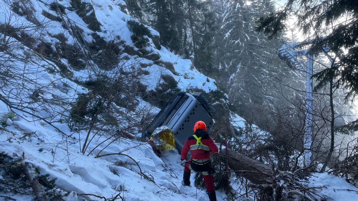 Foto zeigt, wo die Gondel im unwegsamen Gelände abgestürzt ist.