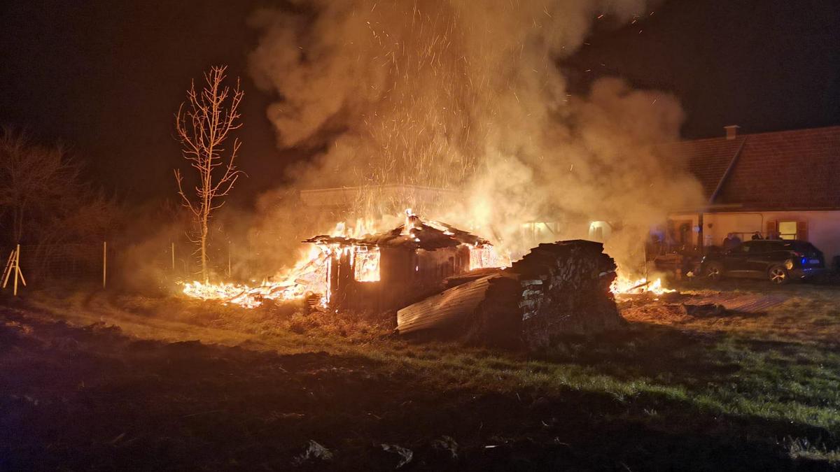 Stmk. Um 02.20 Uhr mitten in der Nacht wurde eine 68-Jährige in ihrem Wohnhaus in Fluttendorf durch ein verdächtig lautes Knistern wach. Als sie aus dem Fenster blickte, sah sie, dass das Nebengebäude in Vollbrand stand. Sie weckte ihren Ehemann, der sofort die Feuerwehr verständigte. Als diese nur wenige Minuten später am Einsatzort eintraf, brannte die Hütte bereits lichterloh - und schließlich trotz aller Bemühungen komplett ab.
