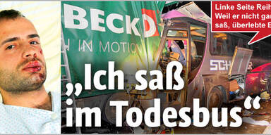 Bashkim Heta (26) aus Nürnberg saß im „Todesbus“ in der fünften Reihe. Er erinnert sich im ÖSTEREICH-Interview: „Plötzlich hörte ich einen lauten Knall. Ich wurde nach vorne geschleudert. Es herrschte Panik, alle schrien.“