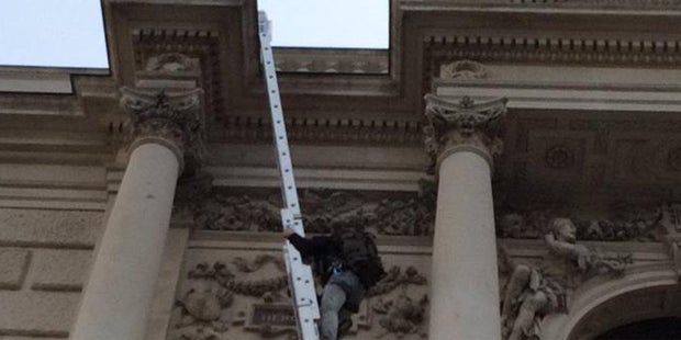 Aktivisten der rechtsextremen Identitären Bewegung stürmten das Dach des Burgtheaters.