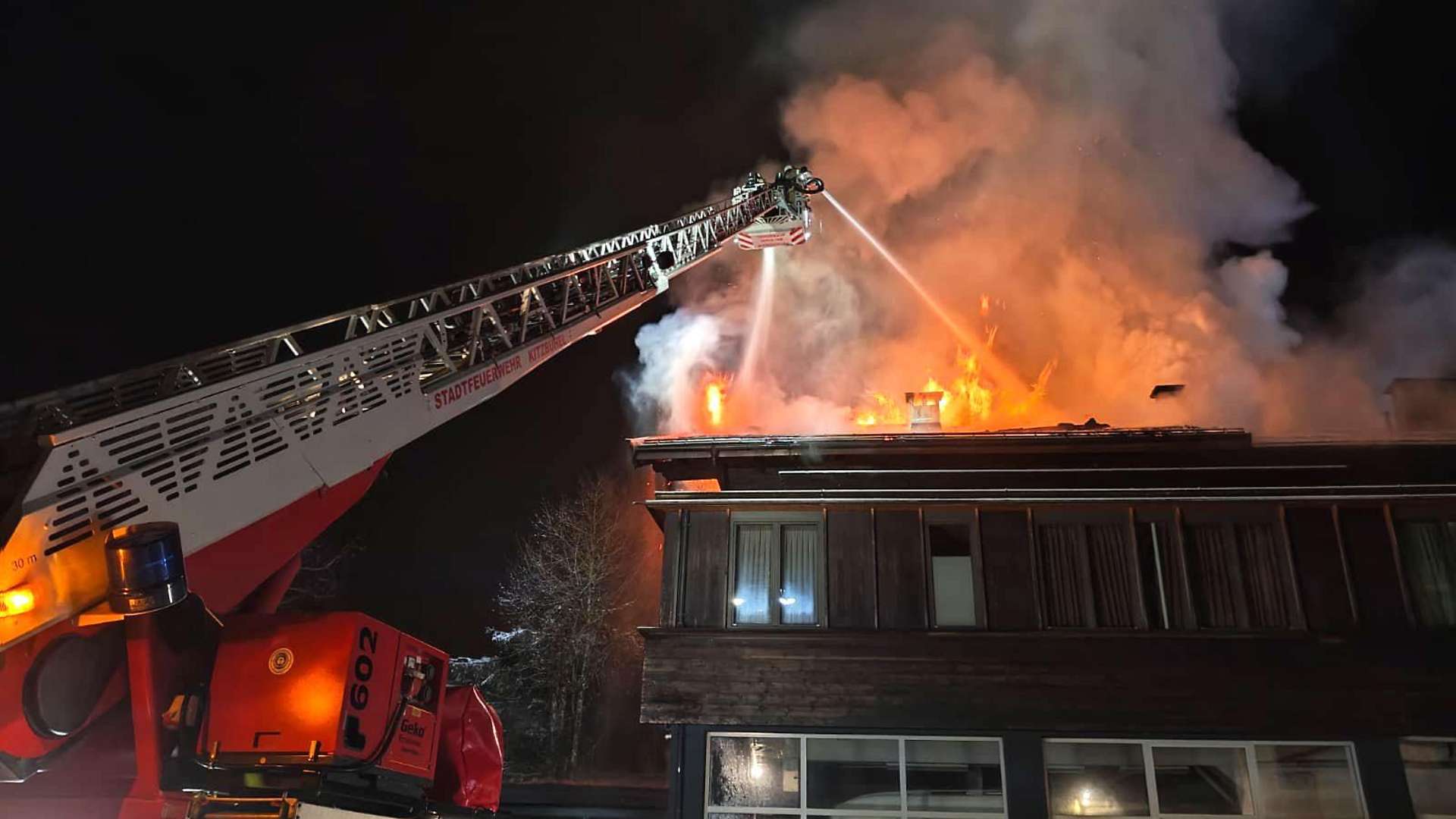 Donnerstag kurz nach 3.00 Uhr hatten wegen eines Feuerausbruchs sieben Personen mitsamt ihren Haustieren aus der Dachgeschoß-Wohnung flüchten müssen. Die Flammen breiteten sich auf den Dachstuhl aus, es entwickelte sich rasch ein Großbrand. Obwohl sich das Brandobjekt in dicht verbautem Gebiet befindet, konnte ein Übergreifen der Flammen auf umliegende Gebäude verhindert werden. Verletzt wurde niemand. Rund 120 Feuerwehrleute aus Kitzbühel und Umgebung standen im Einsatz.