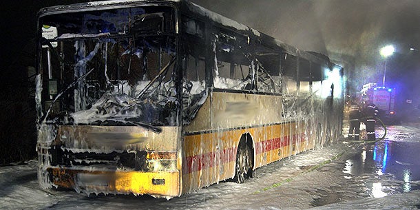 Linienbus brannte völlig ab. Lenker und ein Feuerwehrmann wurden verletzt.