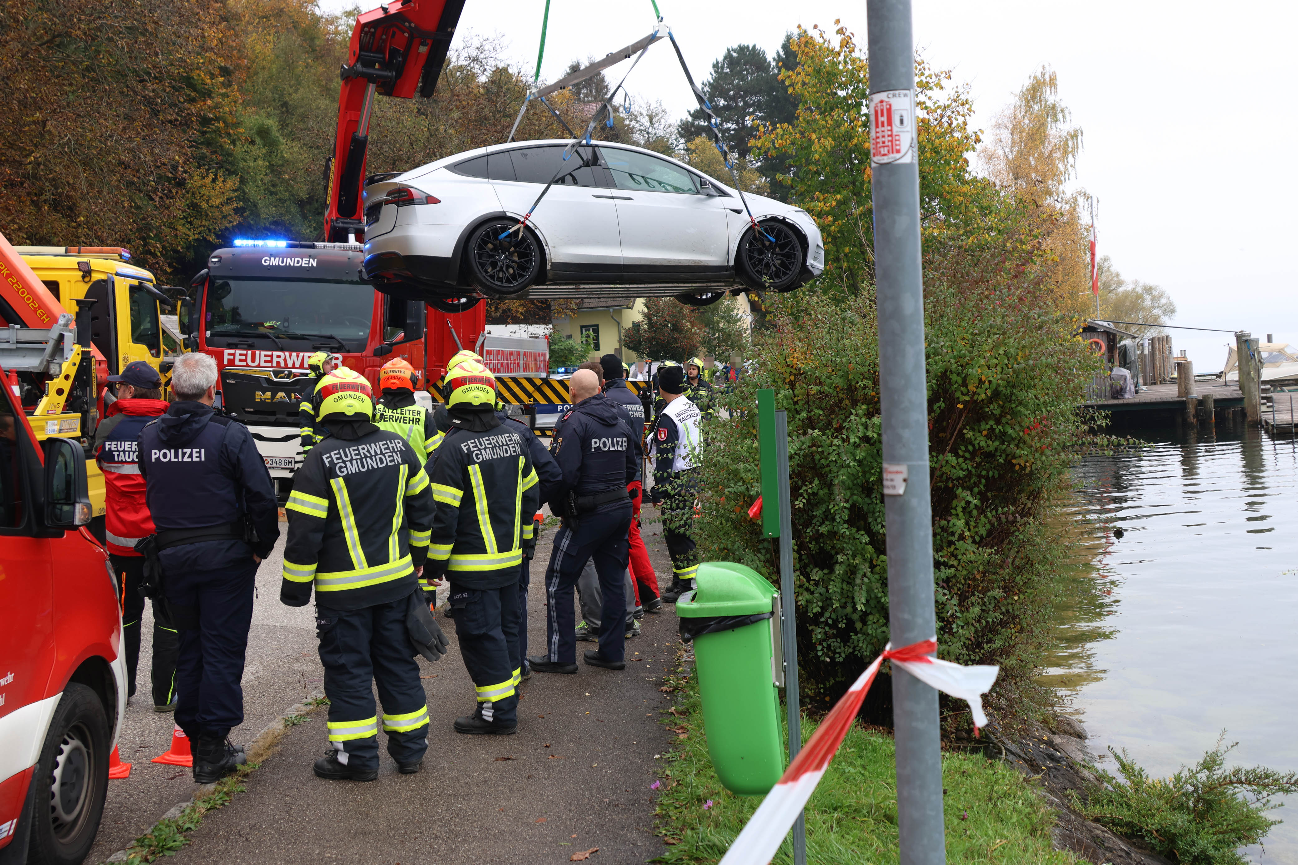Nach dem unfreiwilligen Not-Stopp beschleunigte der Tesla wieder. Aufgrund des erheblichen Geschwindigkeitsanstieges des Elektrofahrzeuges erschrak der Tscheche und verriss das Lenkrad nach rechts, wodurch er den dort befindlichen schmalen Grünstreifen überfuhr und in den Traunsee stürzte.