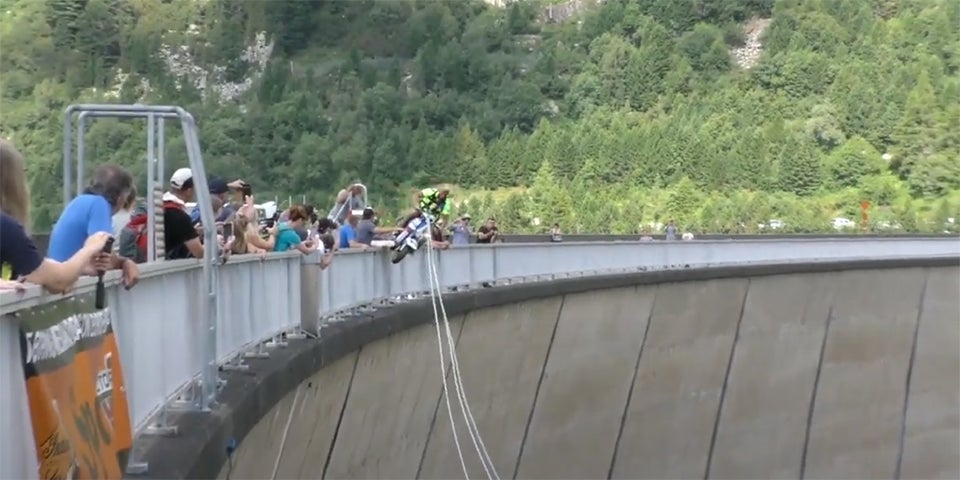 ''Dare Devil'' Günter Schachermayr schaffte den Weltrekord: mit seiner Vespa schwang er sich vom Tiroler Schlegeisspeicher.