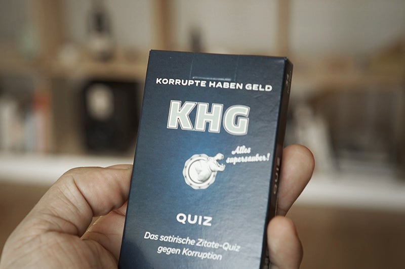 Die Erfinder des Brettspiels »KHG – Korrupte Haben Geld« haben ein neues Spiel herausgebracht. Dieses Mal ein Zitate-Quiz mit über 100 Zitaten aus Politik, Wirtschaft und Finanz. Ein witziger und auch nachdenklicher Streifzug durch die jüngere österreichische Korruptionsgeschichte.