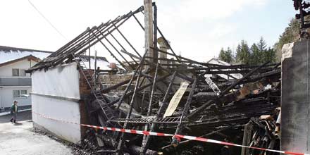 zwei Gebäude in Flammen, auch drei Autos fielen dem Feuer zum Opfer. Der