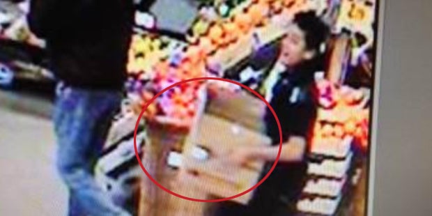 Sie trugen den Parmesan in einer Bananenkiste aus dem Geschäft (siehe Foto oben). Der Käse hatte einen Wert von 700 Euro.