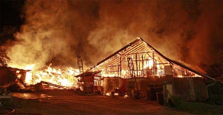 Stallungen stürzten bereits nach kurzer Zeit ein. Zwei Feuerwehrmänner