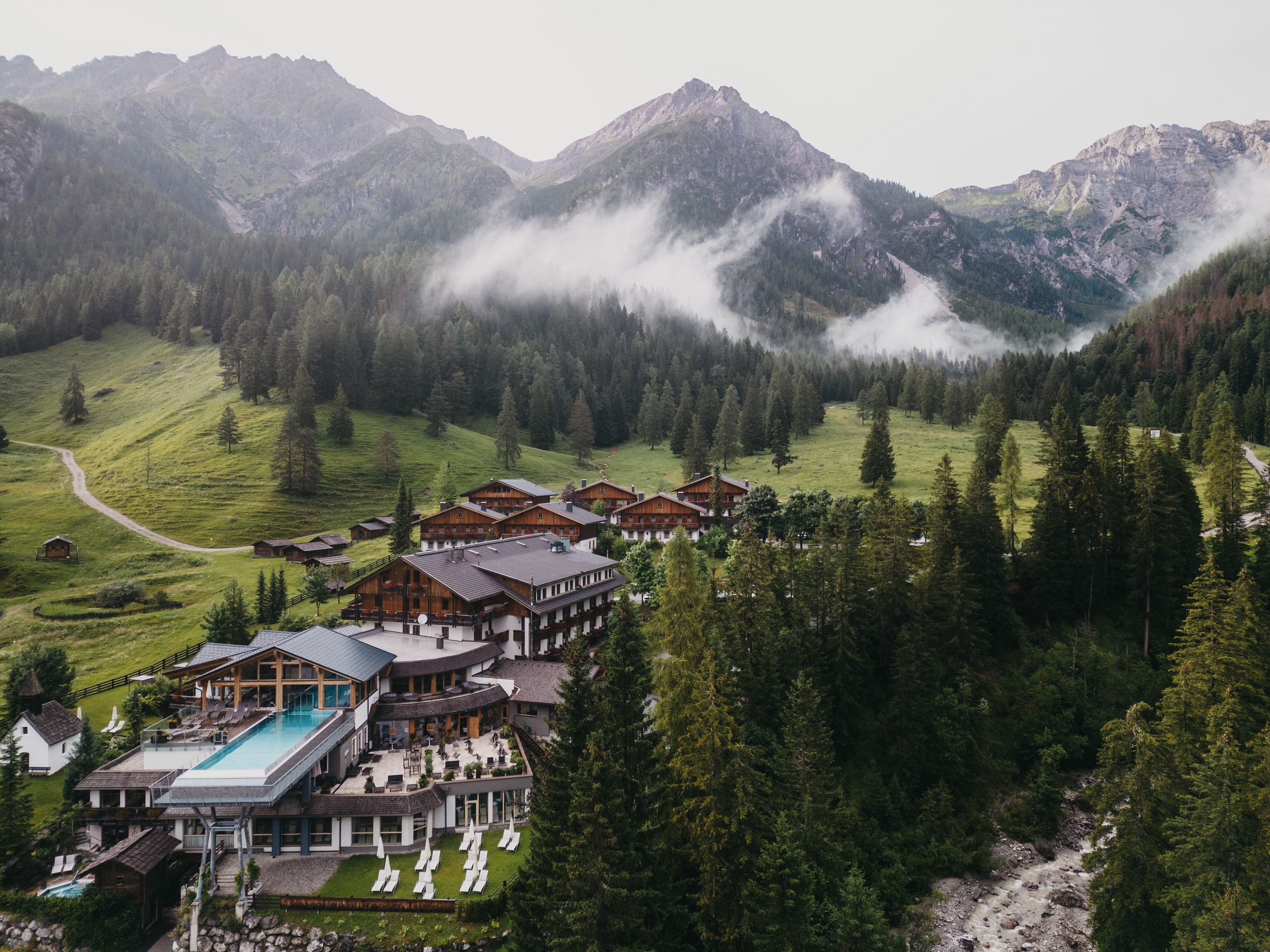 Hier ist der Winter kein Event, sondern ein Erlebnis für alle Sinne. Gäste erkunden die verschneite Umgebung bei Schneeschuh- oder Winterwanderungen, Skitouren oder Rodelausflügen – ganz ohne Liftlärm und Warteschlangen. Danach wartet Entspannung auf höchstem Niveau: elf Saunen, Ruheräume mit Panoramablick, Yoga- und Achtsamkeitsangebote sowie ein Sky-Infinitypool, gespeist mit frischem Quellwasser.
