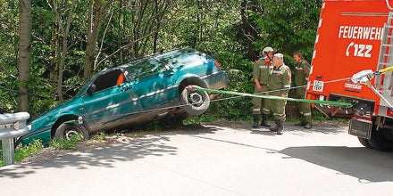 Nach einem spektakulären Verkehrsunfall bei Nußdorf-Debant nahe der Osttiroler Bezirksstadt Lienz hat ein Unfalllenker am Mittwoch auch noch seinen Führerschein verloren. Der 37-Jährige war mit seinem Pkw über den Fahrbahnrand hinausgeraten und mit der Bodenplatte am Asphalt aufgesessen. Die alarmierte Feuerwehr konnte den Absturz des Autos über eine steile Böschung gerade noch verhindern. Der Osttiroler blieb unverletzt und blieb während der Bergungsarbeiten im Auto. Mehr noch: Nachdem die Feuerwehr den Pkw wieder auf die Straße gezogen hatte, setzte er seine Fahrt einfach fort.