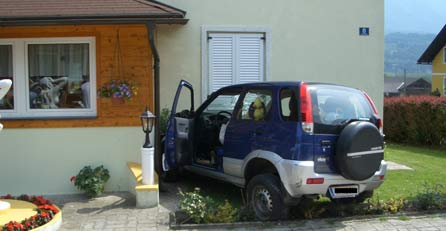 Den Schock ihres Lebens erlitt eine Hausfrau in Kärnten: Um ein Haar wäre sie von einem Amok-Auto überrollt worden – in ihrem eigenen Garten.