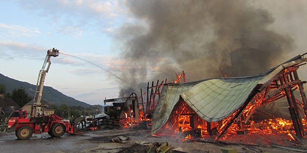Vier Hallen des Werkes brannten aus - Keine Verletzten - Feuer unter Kontrolle.