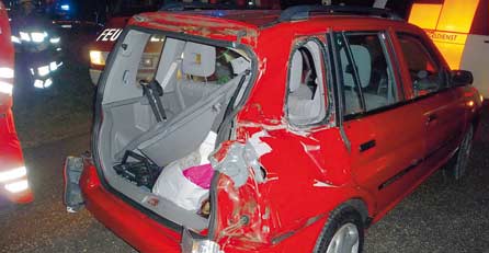 Zu einem verheerenden Unfall mit glimpflichem Ausgang kam es Donnerstagabend gegen 19.30 Uhr auf einem unbeschrankten Bahnübergang in Aich-Bleiburg. Eine 35-jährige Pkw-Lenkerin übersah beim Überqueren der Geleise einen Zug. Die Folge: Das Fahrzeug der Lehrerin wurde von der Lok im Bereich des Hecks erfasst und zur Seite geschleudert. „Wie durch ein Wunder kletterte die Lehrerin ohne einen Kratzer aus dem Wrack ihres Wagens“, ist ein Floriani der Feuerwehr Bleiburg erleichtert. Und auch im Personenzug gab es keine Verletzten.