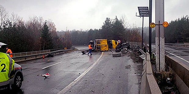 Ladung verteilte sich über Fahrbahn - Landeschemiker an Ort und Stelle.
