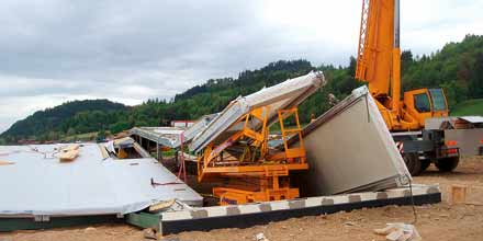 St. Veit/Glan. Wie in einem Actionfilm ist es in Liebenfels (Bezirk St. Veit/Glan) am Dienstagnachmittag zugegangenen: Eine sich im Aufbau befindliche Lagerhalle krachte in sich zusammen – während sich zwei Arbeiter auf dem Dach und sechs darunter befanden. Die filmreifen Szenen endeten zum Glück aber mit einem Happy End. Die acht Männer blieben unverletzt, dank Horst Rainer. Der umsichtige 55-jährige Kranführer aus Heiligengeist bemerkte, dass die Konstruktion knickt und warnte seine Kollegen. Wenige Sekunden später krachte die rund 1.000 Quadratmetergroße Halle in sich zusammen.