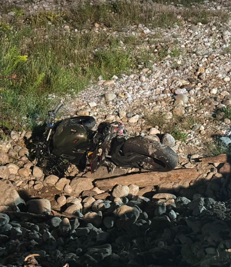 Er stieß frontal gegen einen großen Stein und wurde etwa 25 Meter weit vom Motorrad in ein Bachbett geschleudert.