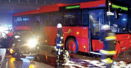 Am Linienbus entstand schwerer Sachschaden, der Pkw ist schrottreif.